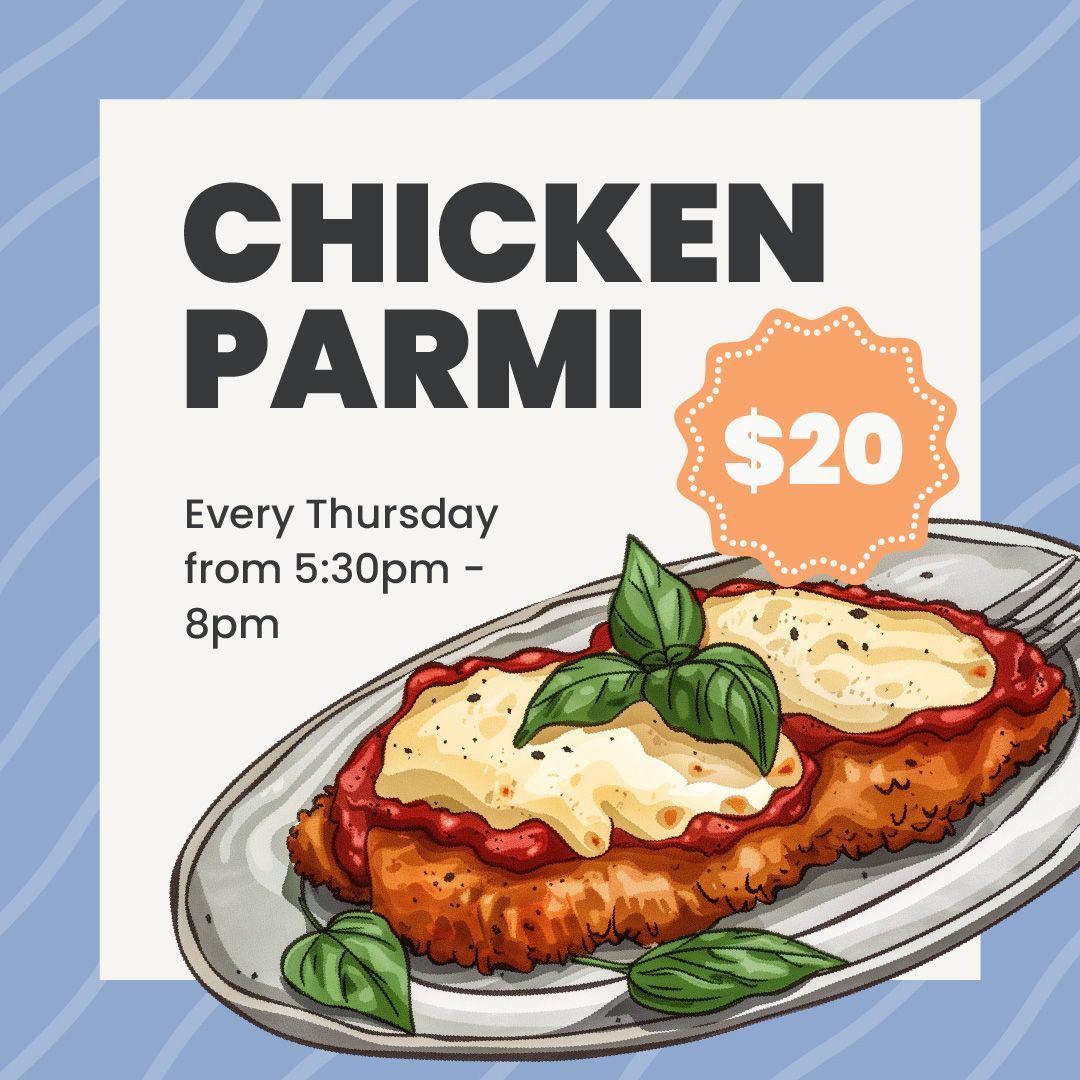 Thursday night just got better with our $20 Chicken Parmi special! Whether you like it classic or with a twist, enjoy this hearty meal for just $20. Available from 5:30pm – 8pm every Thursday. The perfect way to end the week on a high note!